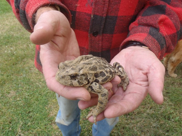 Since I’d asked the local Naturalist Club earlier on about our big swarm of little toads — obviously this year’s crop — I sent a picture of this impressive big fella to Rick Howie, who knows all about these things. He confirmed it’s a Western Toad, which is an at-risk species.