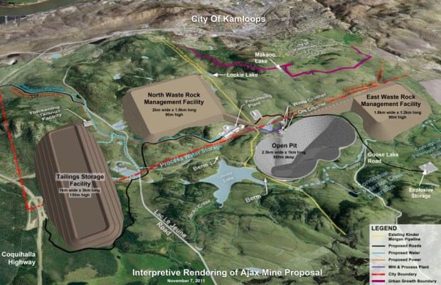 The Stop Ajax Mine website has several maps of the project, including “an interpretive rendering” the Kamloops Area Preservation Association unveiled at a pre-election forum early in November.
