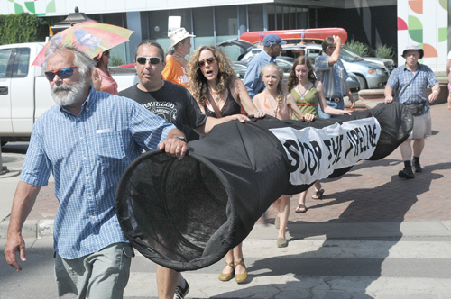 A few dozen people rallied to protest Enbridge’s Northern Gateway pipeline project that would take tar sands product across northern B.C. to Kitimat and from there by tanker to Asia and the U.S..
