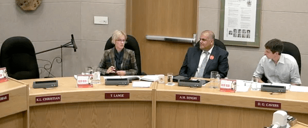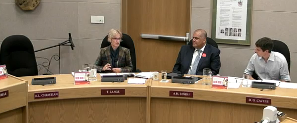 At one point, Councillors Marg Spina, Donovan Cavers and Tina Lange all excused themselves, declaring conflicts of interest on a carriage house application. Cavers was the only one with a direct conflict, because he was the applicant. Spina left the room because she was an earlier applicant on another site, while Lange noted she owns some suites.