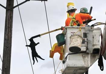 Undignified but successful rescue of Trinity the cat by B.C. Hydro averted a potential PR crisis. (Kamloops Daily News photo)