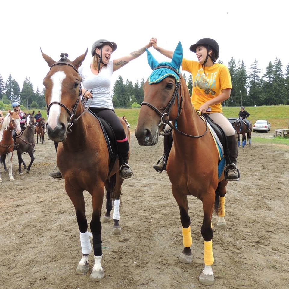 Liz Smith and Sid on left, Thalia Ochoa and Kesler on right, at Standardbred games day last year put on by Greener Pastures to raise funds for Standardbred rescue.