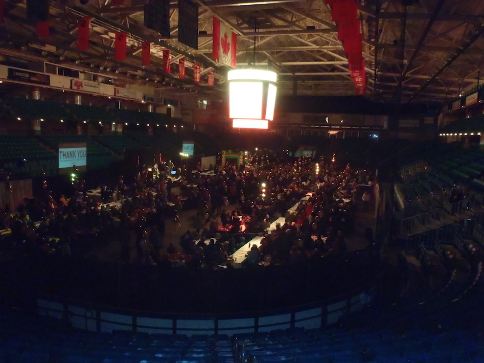 The invitation-only festival-style event filled the Interior Savings Centre arena floor as people lined up for mini-burgers, pork sandwiches, salmon, corn dogs and snow cones.