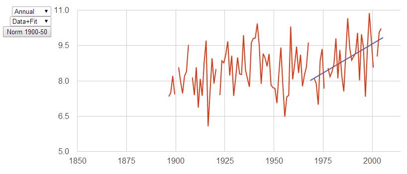 Kamloops is experiencing a warming of similar magnitude as the Canadian North during 1970-2005 as indicated in Figures 2 and 3 (see also Tsigaris, 2013). Kamloops experienced a 0.06 Celsius per decade warming during the 1900-1970 period.