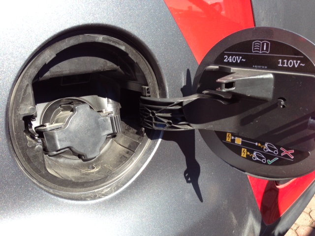 There is a gauge that indicates how much charge is left on the battery, the electric equivalent to the gas gauge. She estimated she gets about 120 kilometres per charge, which is plenty for in-town driving.
