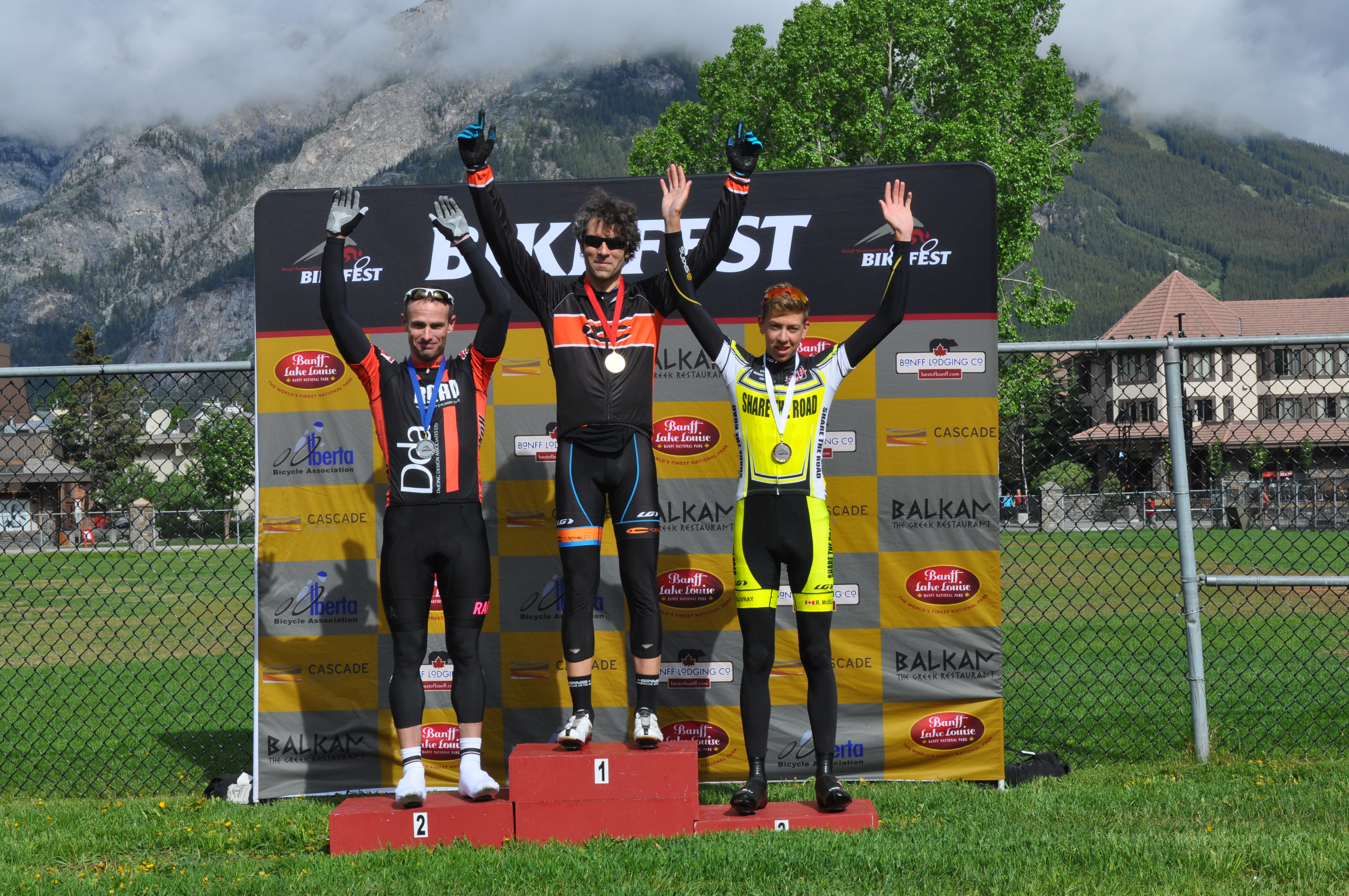 Devon Moonie (right) on podium for Tunnel Mountain Road Race.
