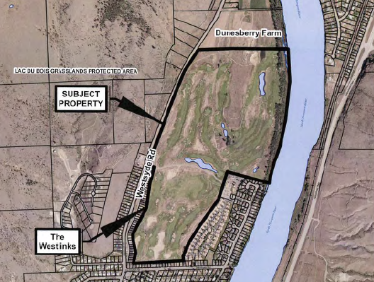 Developer Bill Bilton of North Core Developments wants to remove a 4.6-hectare linear strip north of the Westlinks residential development that backs onto the Dunes golf course along Westsyde Road. The property is currently part of The Dunes.
