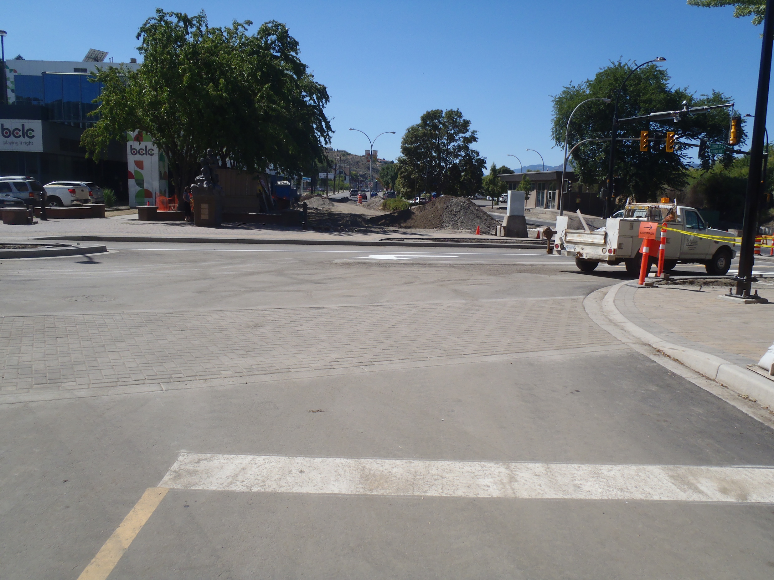 Public works and utilities director Jen Fretz and corporate services director Dave Duckworth confirmed for The Armchair Mayor News today that redesigning the intersection didn’t allow for the old lefthand turn off the 100-block Victoria downtown onto First Avenue.