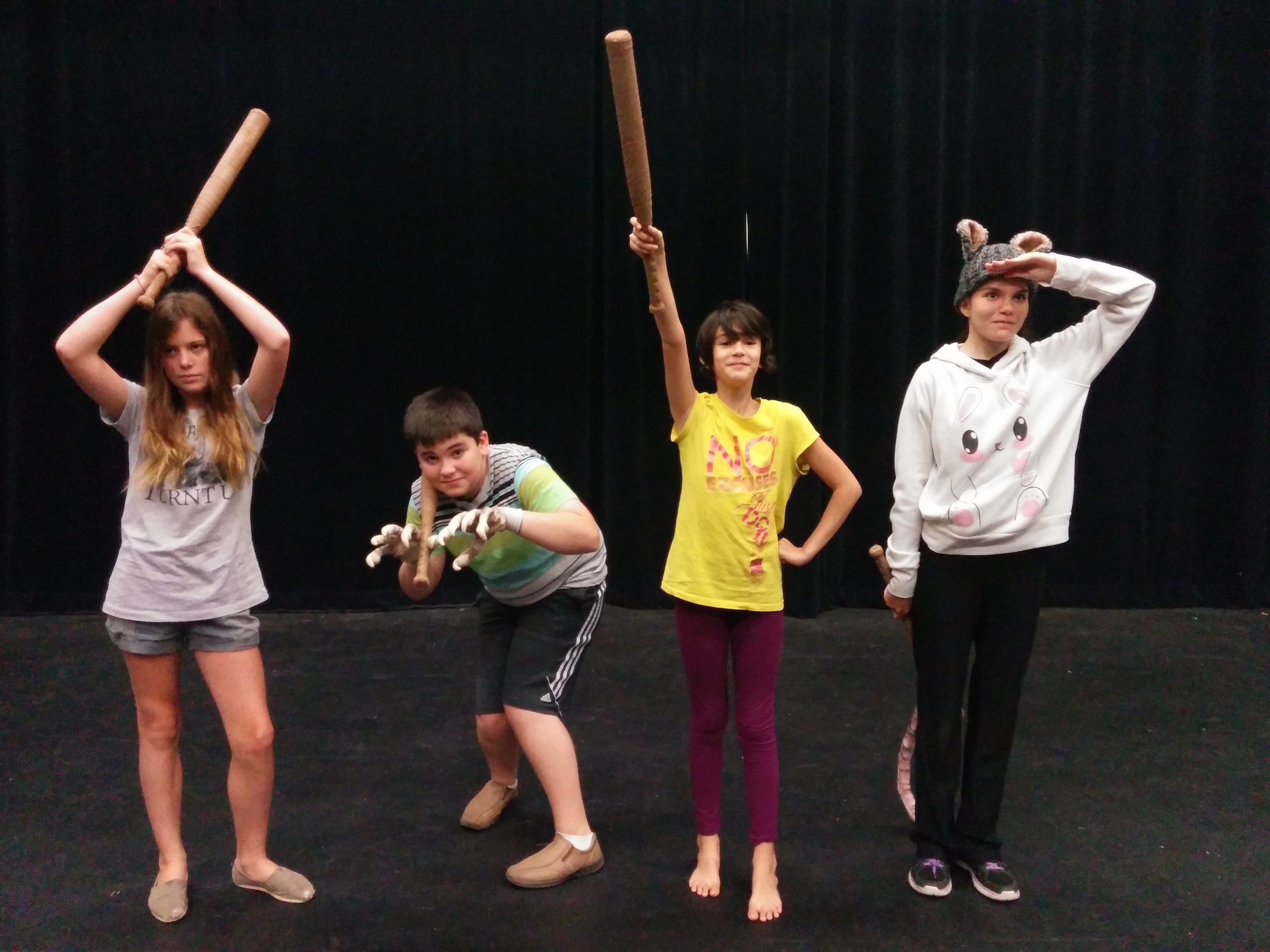 Jane Harestad (Rat) rehearsing musical number “Off-a-Bashing.”