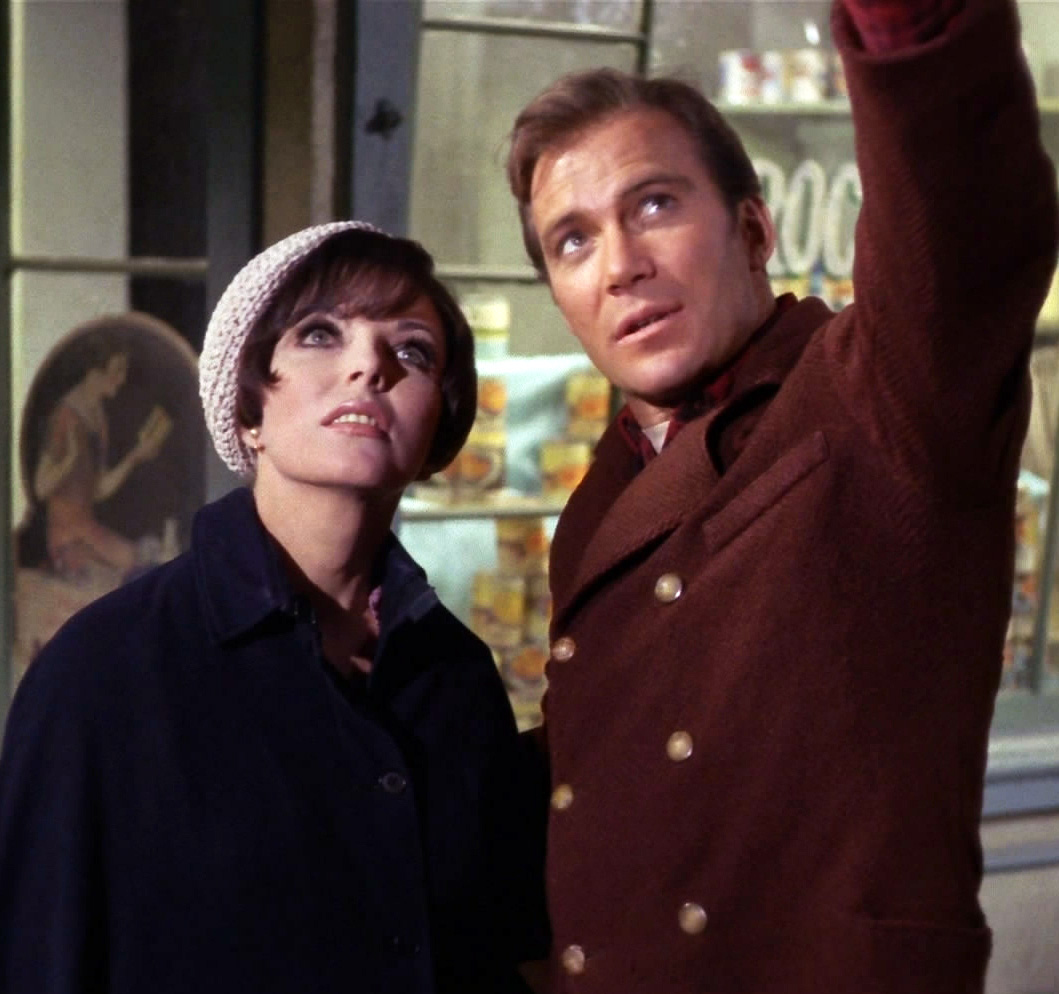 Joan Collins as Edith Keeler and Willliam Shatner as Captain Kirk in The City on the Edge of Forever,