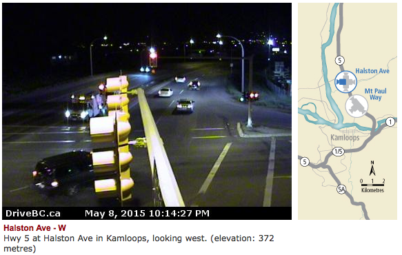A permanent web cam has been installed on Highway 5 at Halston Avenue with four views, looking north, south, west and east. As well, a temporary camera is located on Highway 5 at Mt. Paul Way with three views (looking north, south and southeast) to aid motorists while the City of Kamloops undertakes work on the Overlanders Bridge.