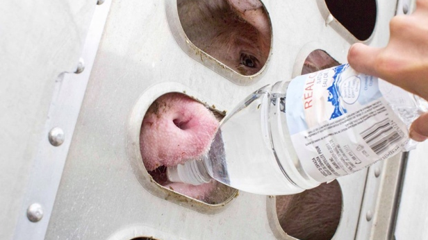 A FEW WEEKS AGO, an Ontario woman (a known animal activist) gave water to a few pigs headed for the slaughterhouse. The pigs were in a truck and the water was given through slots and there was no big crime other than interfering with the man-made string of events involving pigs that are to be rendered for human consumption.