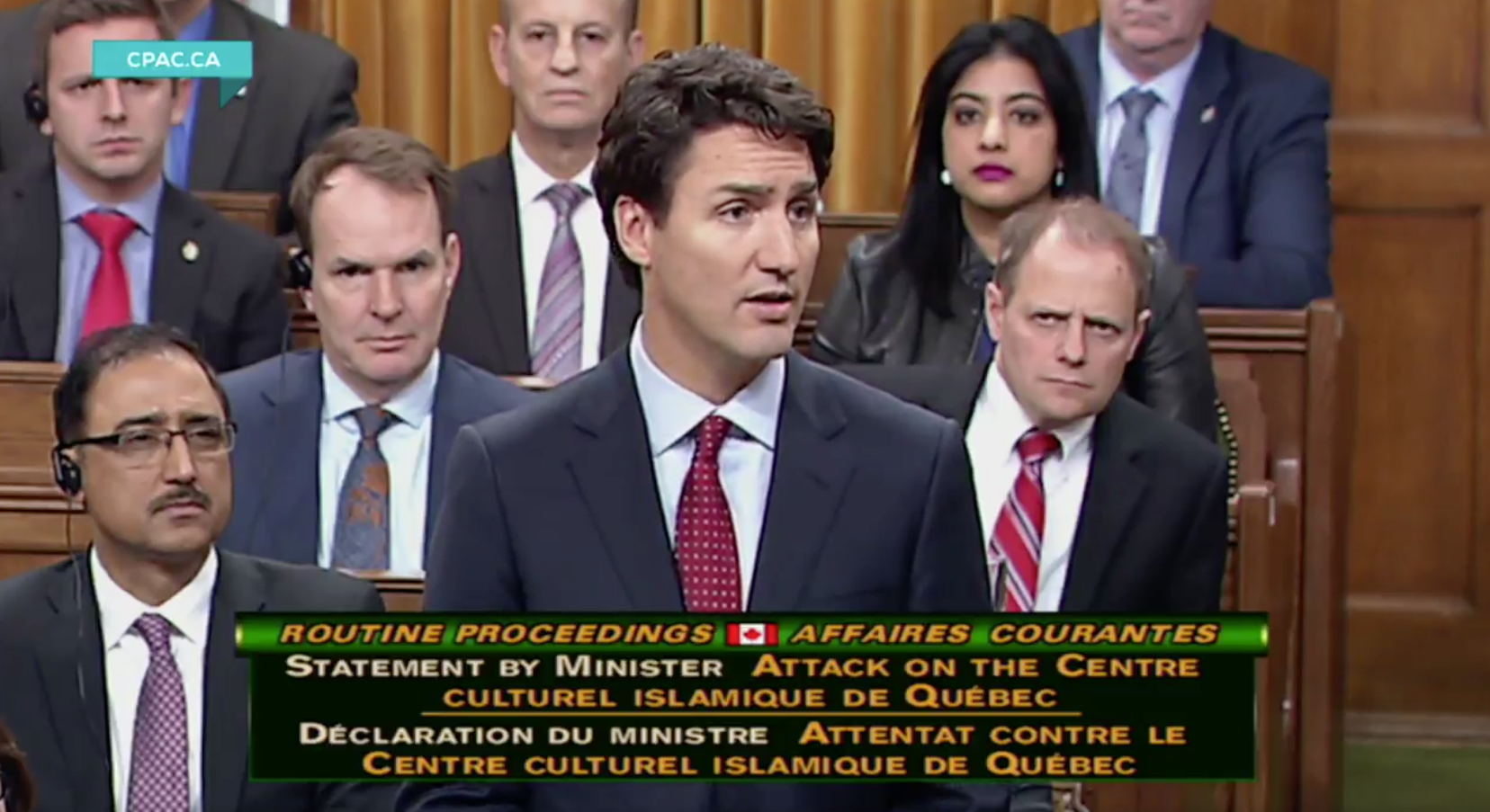 Prime Minister Justin Trudeau issued the following statement after hearing of the fatal shooting at the Centre culturel islamique de Québec located in the Ste-Foy neighbourhood of the city of Québec, in which six people were killed and others wounded: