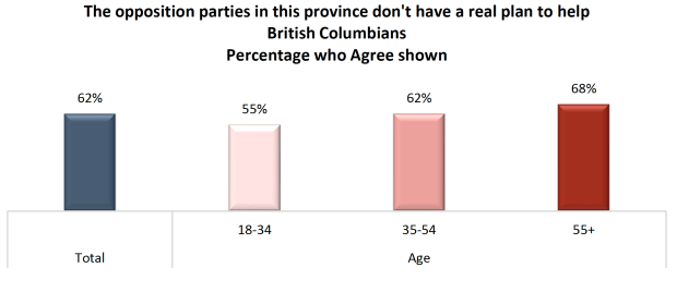Asked to consider the statement “the opposition parties in this province don’t have a real plan to help British Columbians”, six-in-ten residents (62%) agree: