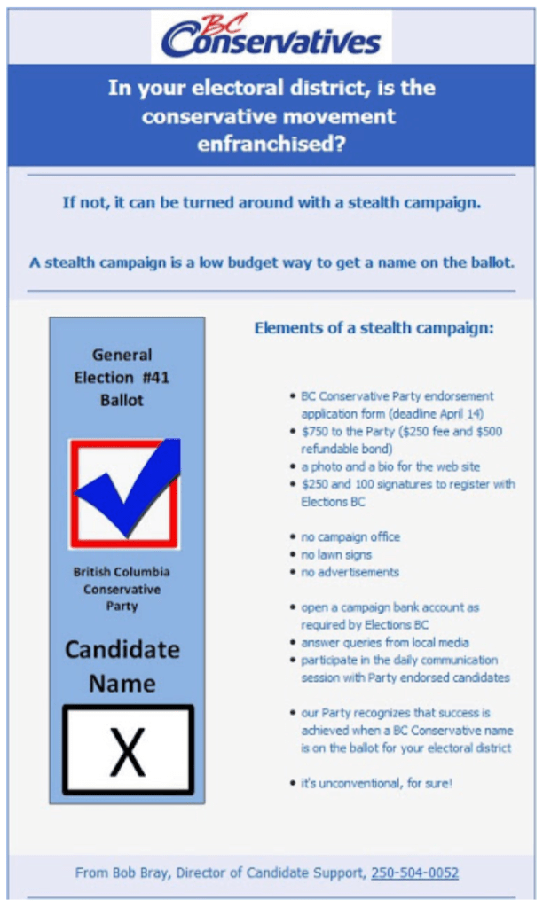 Here’s my message to Bob Bray, Director of candidate support for the BC Conservative Party … PULL THIS PLAN BEFORE IT IS TOO LATE.