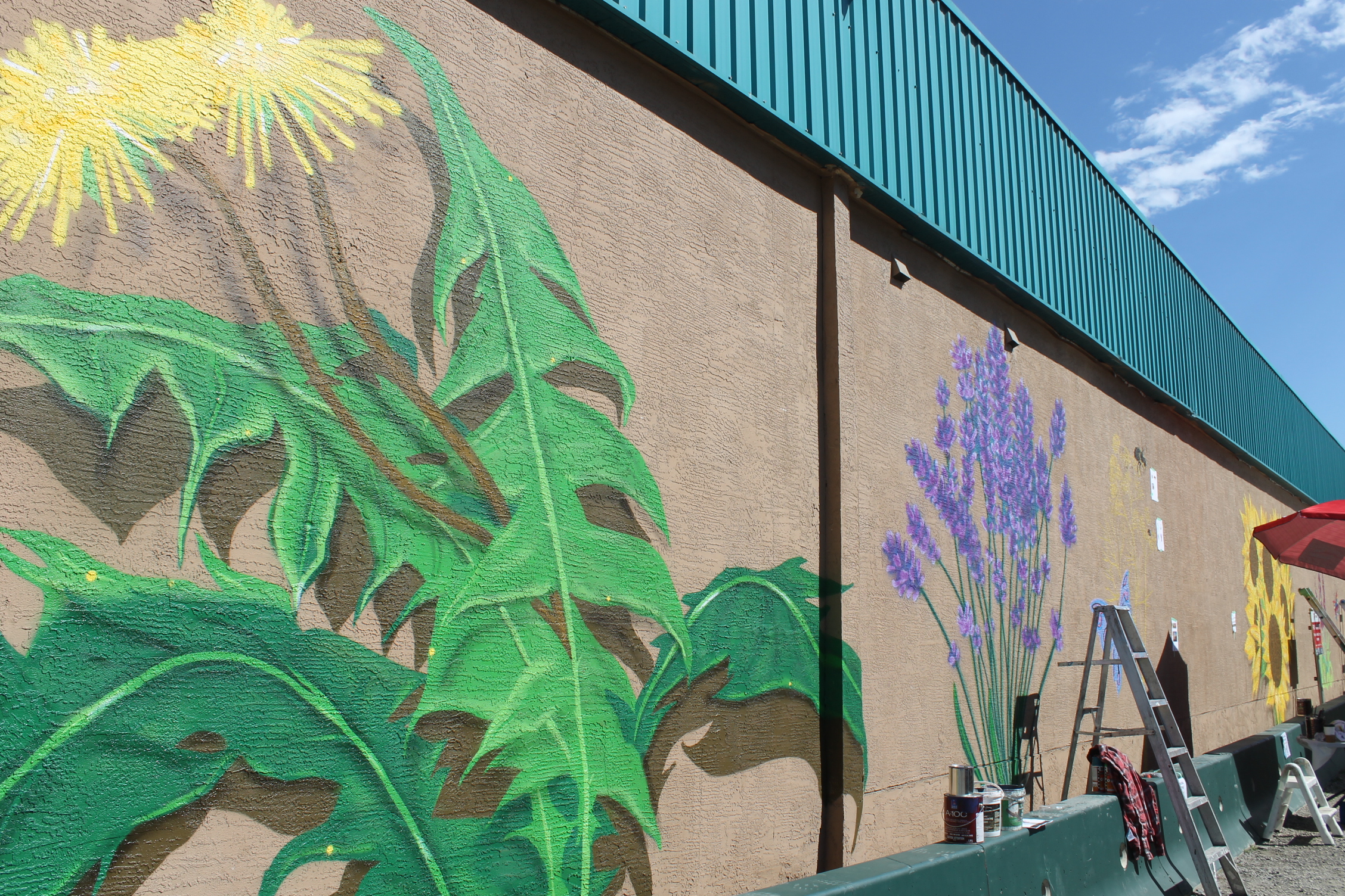 Five exceptionally talented artists came together to create a breathtaking mural on the side of Jonathan Buchner Gems and Jewellery. The mural – a 90-ft. long piece of art displaying flowers and bumblebees – shows how artists with different backgrounds and styles can draw inspiration from one another to create a single exceptional art piece.