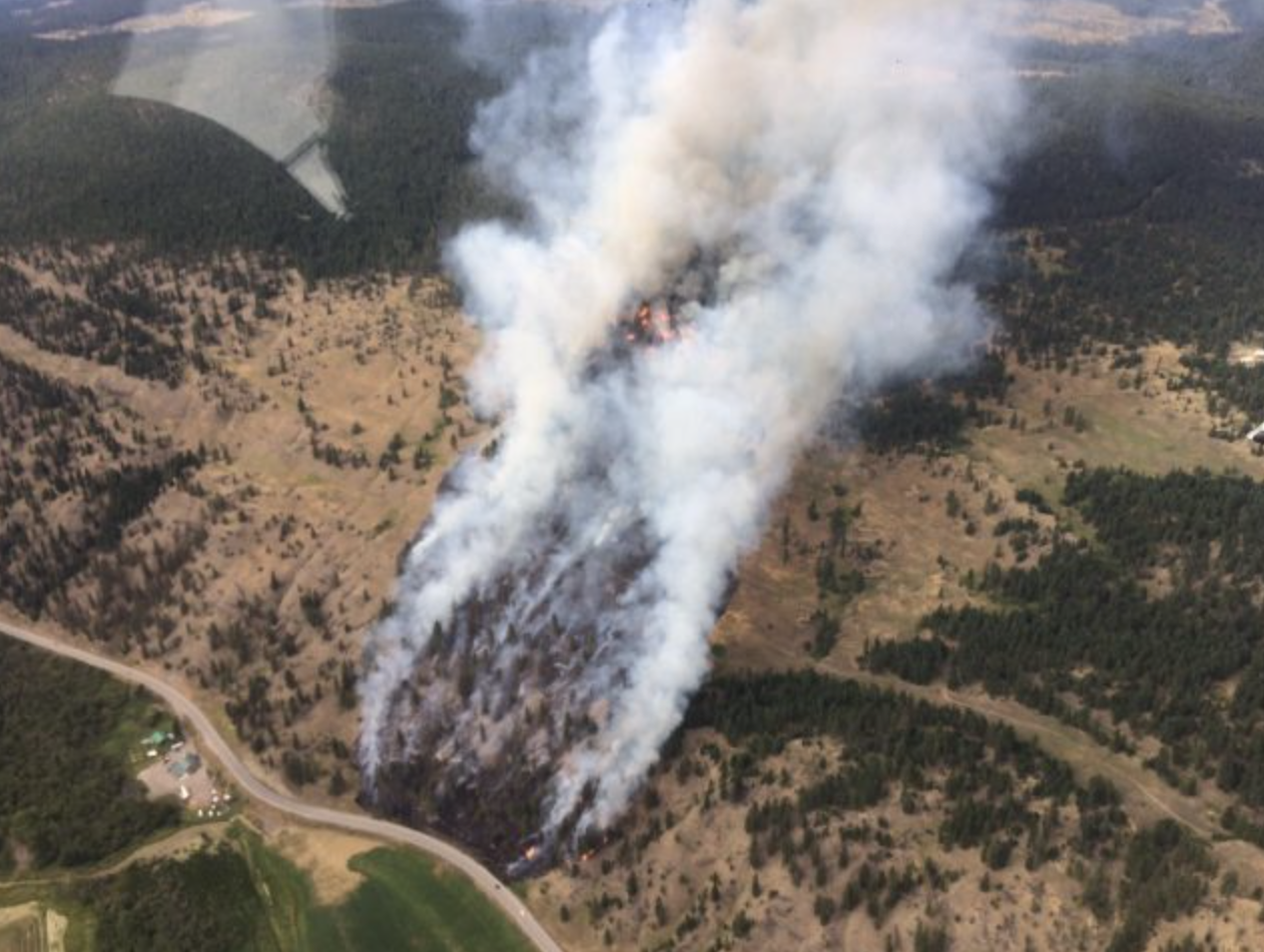 The fire — known as the Martin Mountain Fire — broke out near Highway 97 in the afternoon, and BC Wildfire Service responded with ground crews and air support. Burning 1.5 hectares north of Monte Lake, it was estimated at 100 hectares by 7:30 p.m.
