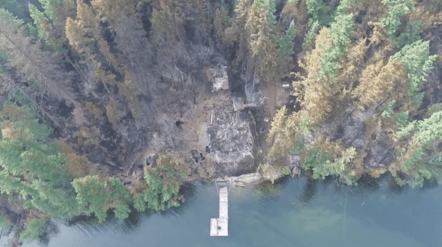 A pair of videos released by the Thompson-Nicola Regional District Wednesday (July 26, 2017) show details of the destruction at Loon Lake from the Elephant Hill wildfire.
