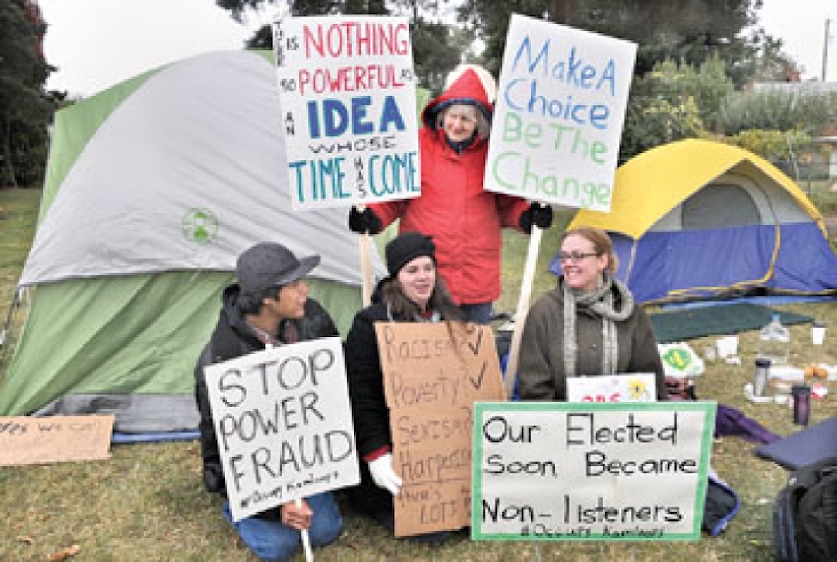 NO ONE KNEW what would happen next. We gathered in anticipation in front of the Kamloops Library on October 15, 2011. The Occupy movement was sweeping the globe and its reach extended to Kamloops.