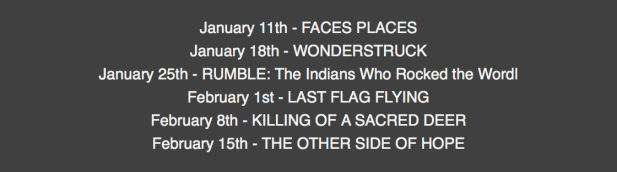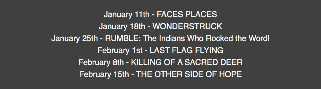 The series opens Thursday, Jan. 11, 2018 with Faces Places.