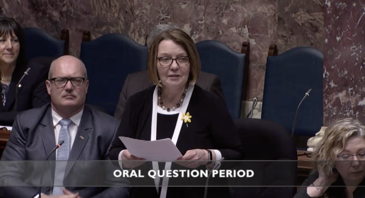 An exchange during Question Period on Wednesday, April 18, 2018 between Prince George-Valemount MLA Shirley Bond and Environment Minister George Heyman: