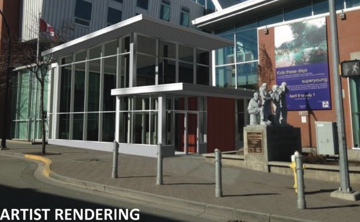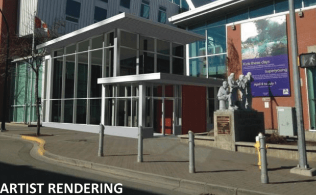 The library will remain open but the public will have to access the Civic Building via a walkway from Victoria Street beside the parkade ramp.
