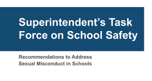 The task force concluded that a review of existing policies on student safety is needed, and that policies specific to sexual misconduct should be developed.