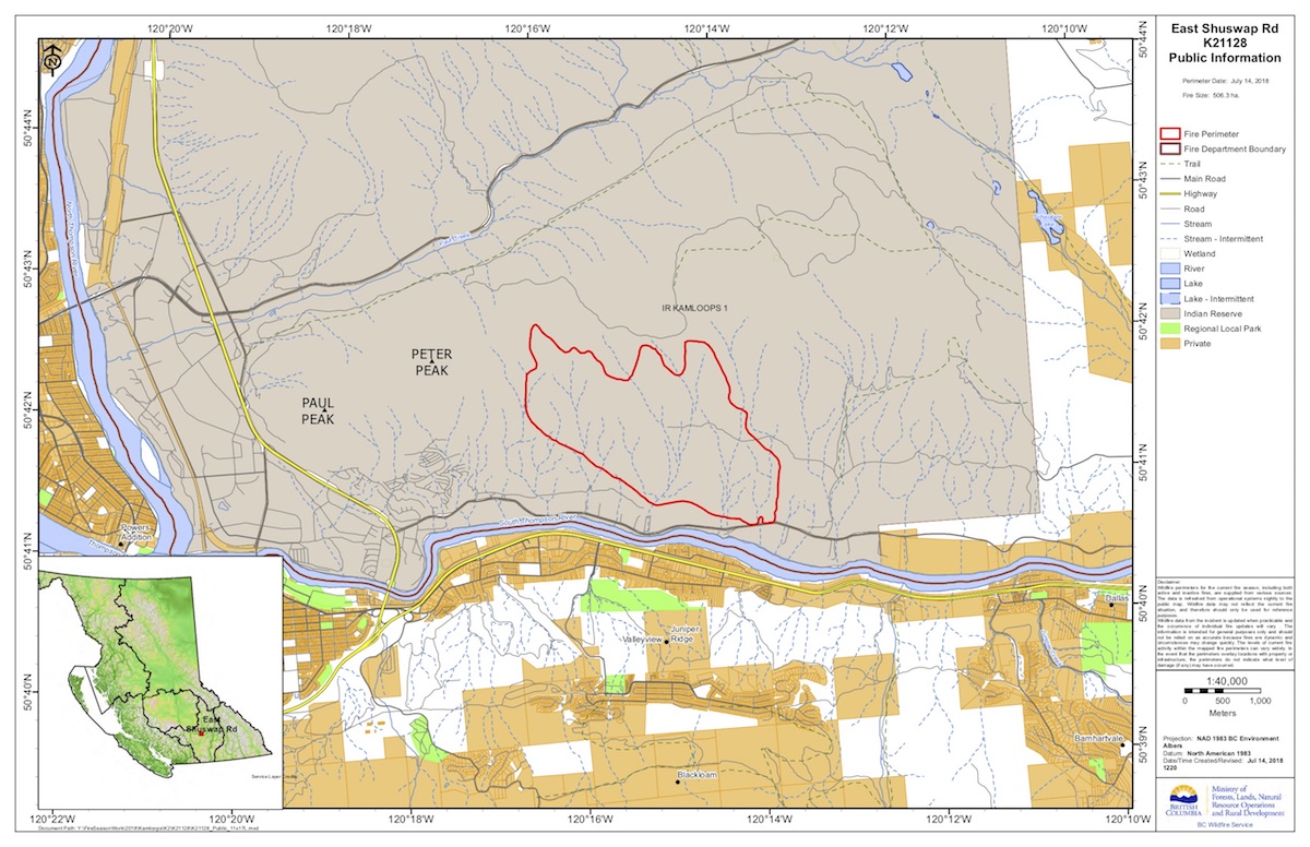 A co-operative attack on the fire has been carried out by BC Wildfire Service, Kamloops fire Rescue and Tk’emlúps te Secwépemc since the fire started earlier this week.