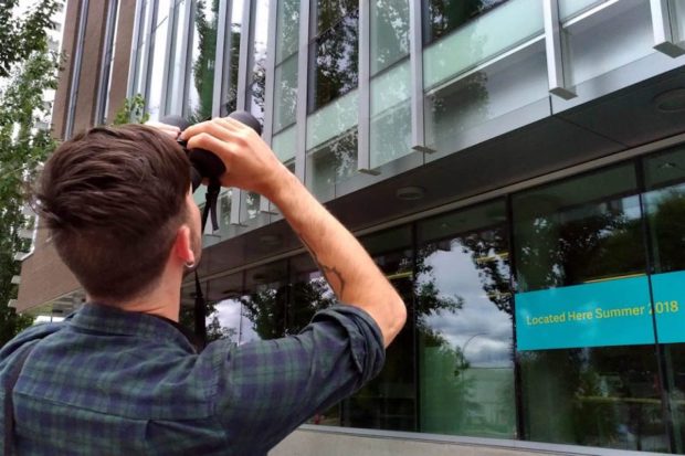 McIsaac is collecting and generating data, including reports of dead birds from TRU’s grounds crew. He walks around campus photographing windows, analyzing them for signs birds have struck the windows, such as smudges and marks. For high windows, he uses binoculars.