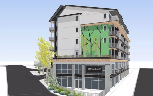 The Station, a new condo-commercial building under construction in Tranquille Road shopping district.