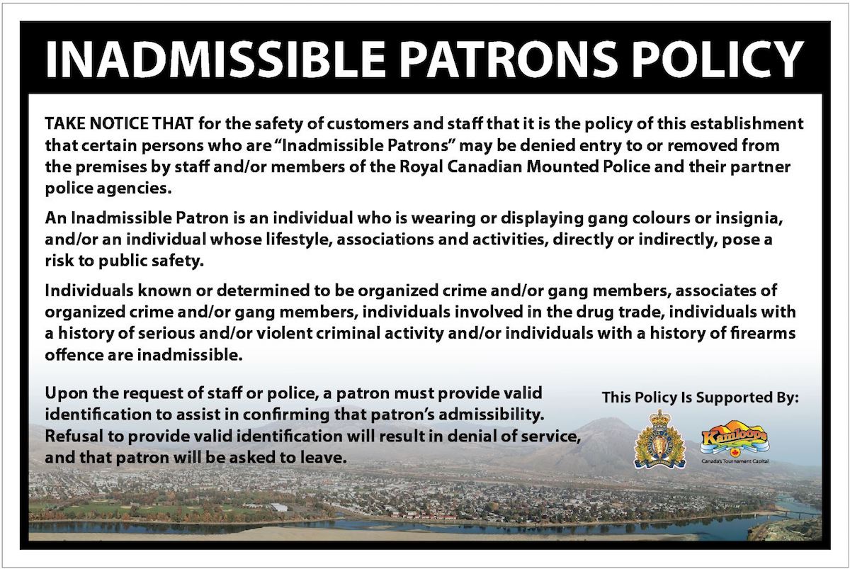 Called the Inadmissible Patrons Policy, it can result in certain patrons being removed or denied entry if he or she is deemed to be “an inadmissible patron.”