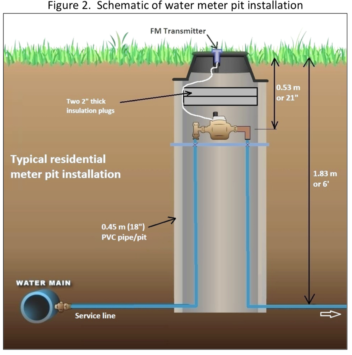 The water meter will freeze 0.5 m below surface. It should be at least 1.5 m