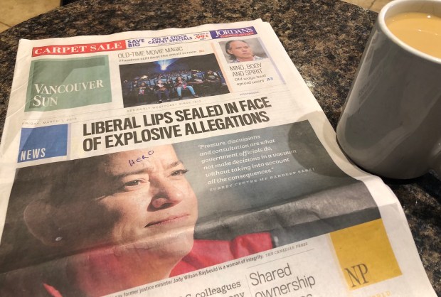 THE NEWSPAPER IN THE COFFEE SHOP Friday morning said all there is to know about the scandal involving former justice minister Jody Wilson-Raybould.