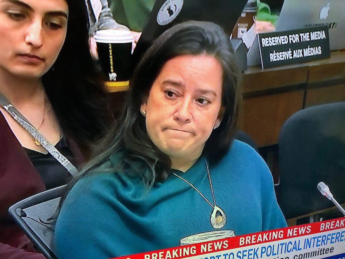Wilson-Raybould listens to questions from Commons justice committee Wednesday, Feb. 27, 2019. (Image: TV screenshot)