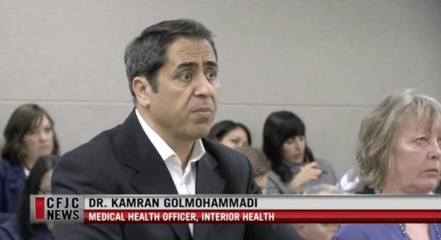 IHA’s Dr. Kamran Golmohammadi addresses City council Tuesday. (Image: CFJC Today)
