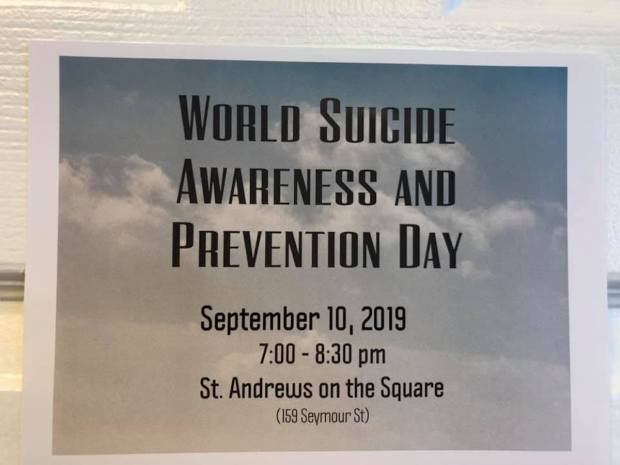 Suicide Awareness and Prevention Day will be marked Tuesday, Sept. 10 with an event at St. Andrews on the Square.