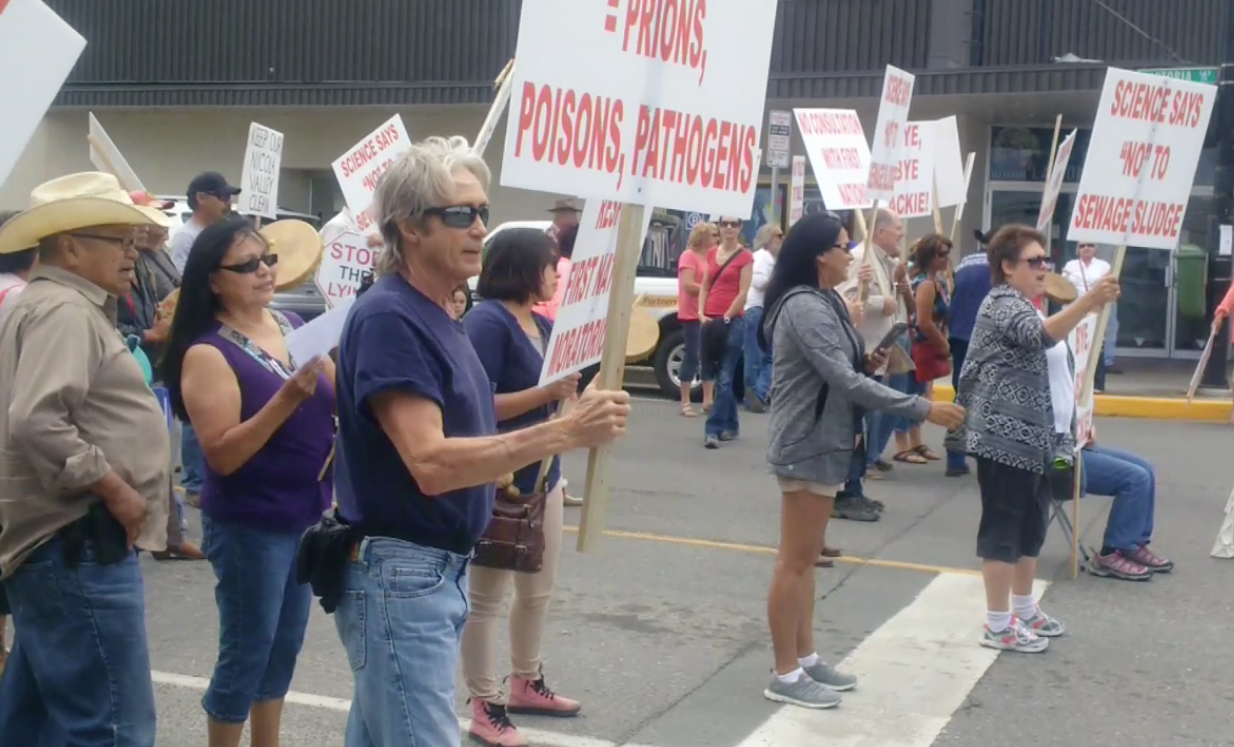 Opponents to City of Kamloops plans to ship bio-solids to Turtle valley rallied at Kamloops City Hall in the spring.  While the debate over the Ajax Mine continued, there were frequent protests against KGHM’s proposed plans.