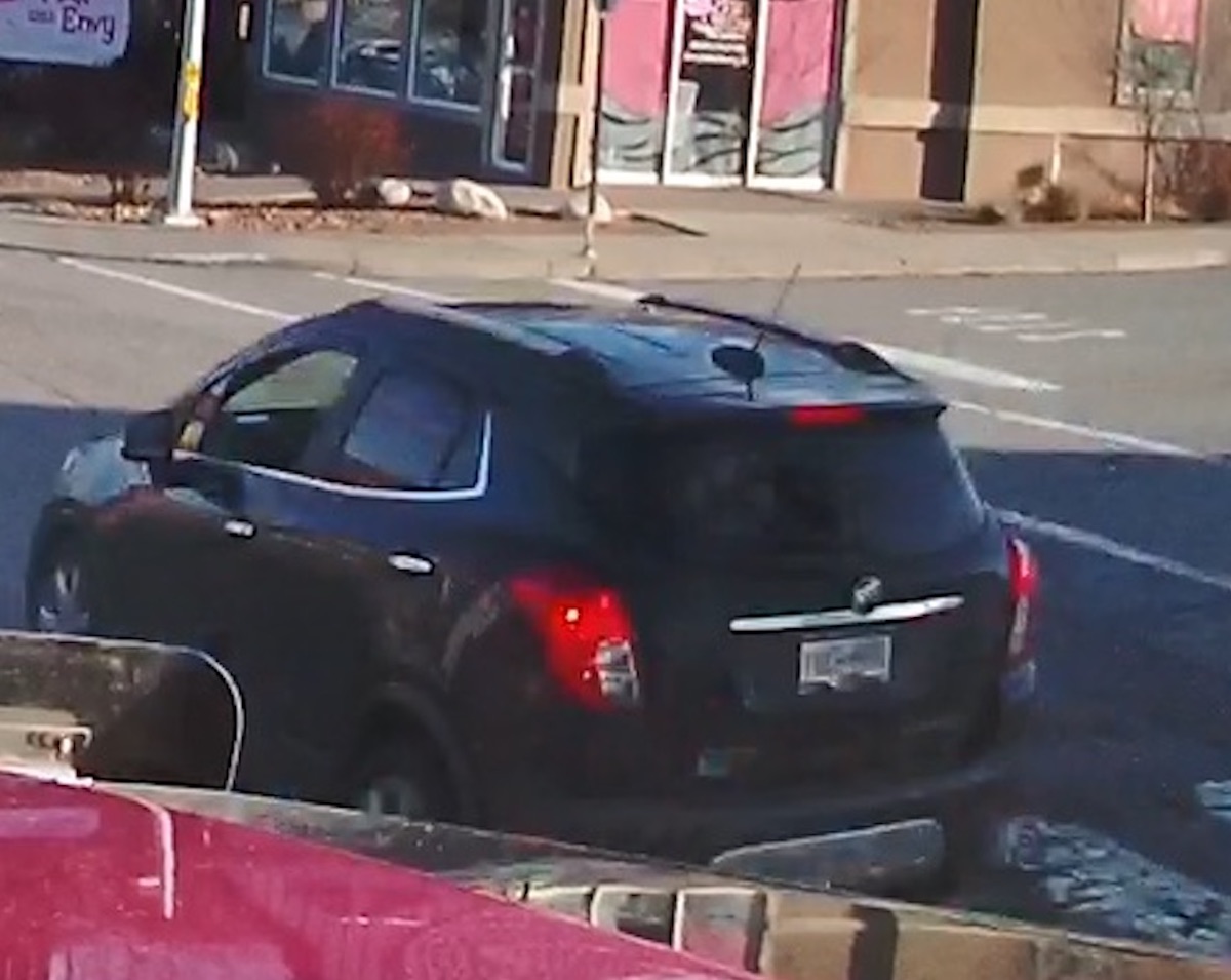 The suspect vehicle is described as a black, newer-model Buick Encore. It may or may not have damage to the front left quarter panel.