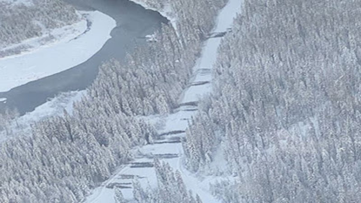 Coastal GasLink photo showing trees lying across the Morice River Forest Service Road, which the hereditary chiefs took responsibility for cutting down. It’s estimated more than 100 trees have been cut down on a three-kilometre section of the public road.