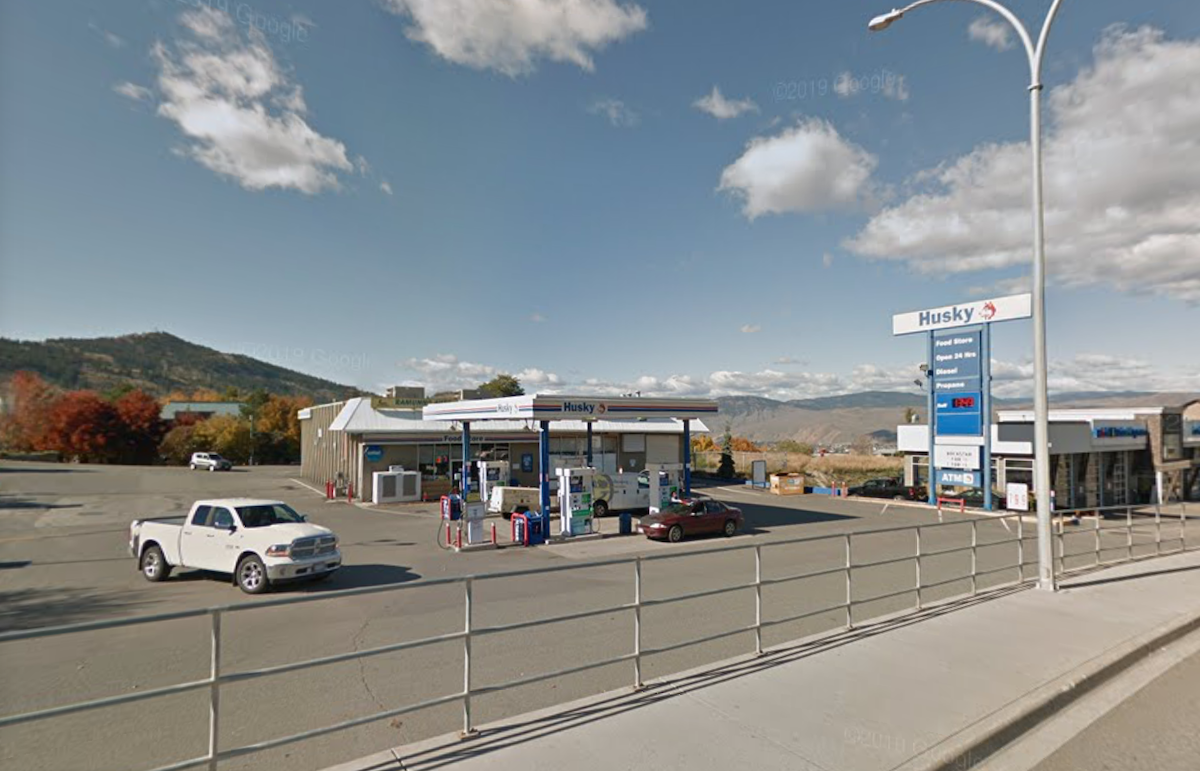 At about 8:40 p.m., Kamloops RCMP received a report of a robbery that had just occurred at the Husky Gas Station located at 884 Columbia St. W. The lone male suspect produced a knife, stealing cigarettes and cash.