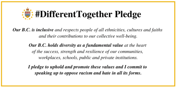 “Our B.C. is inclusive and respects people of all ethnicities, cultures and faiths and their contributions to our collective well-being.