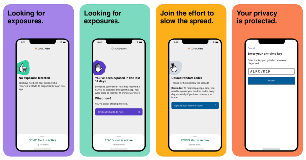 As a government website explains, the app doesn’t track a user’s location or collect any names, addresses or other personal information.