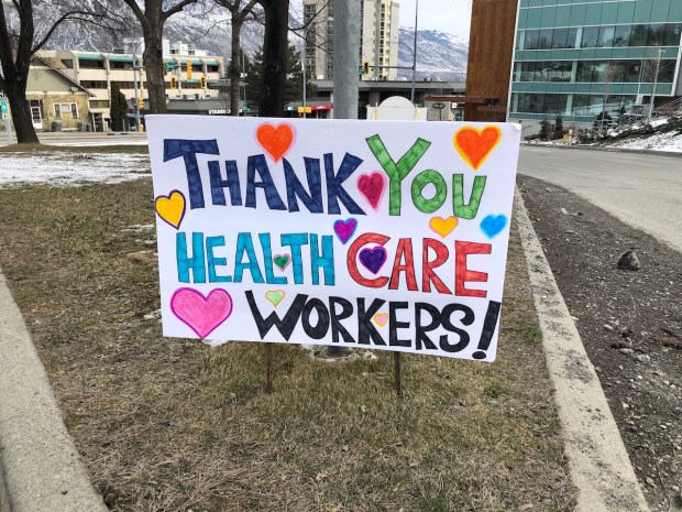 Today I pulled up to work and saw the big “thank you health care heros” sign on the front lawn of RIH. Today I was running behind schedule and it was snowing so I parked in the public parkade.