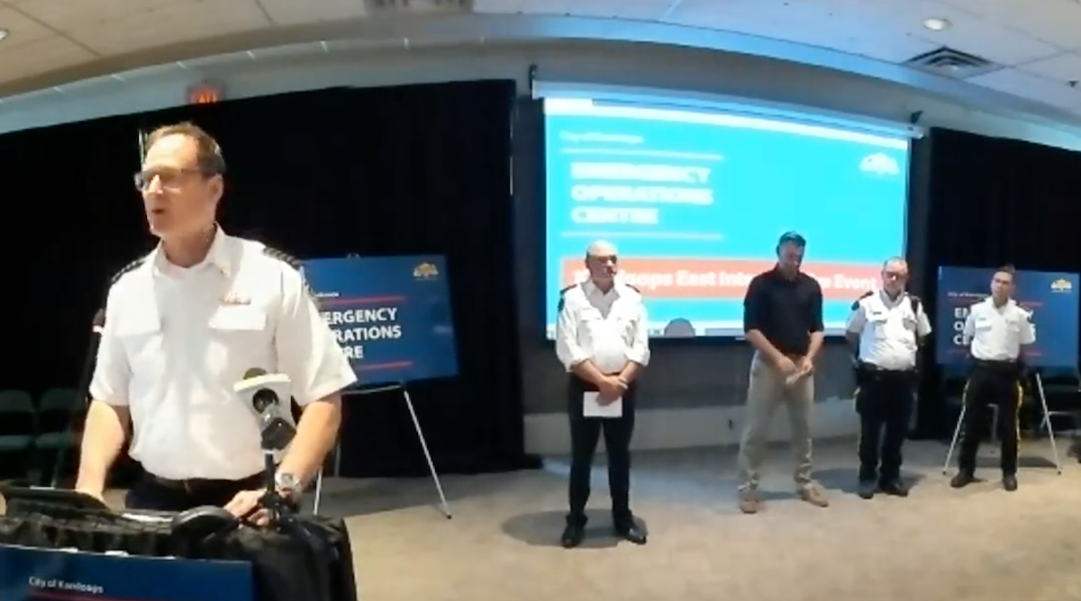 Trawin joined other City spokespersons and RCMP to answer questions from reporters on last Thursday night’s fire that caused an evacuation of many Juniper residents. The fire is now considered out.