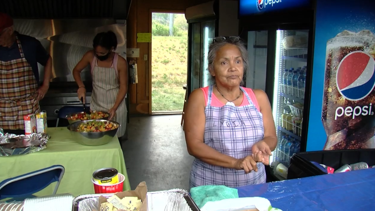 Volunteers prepare food for wildfire evacuees. (Image: CFJC Today)
