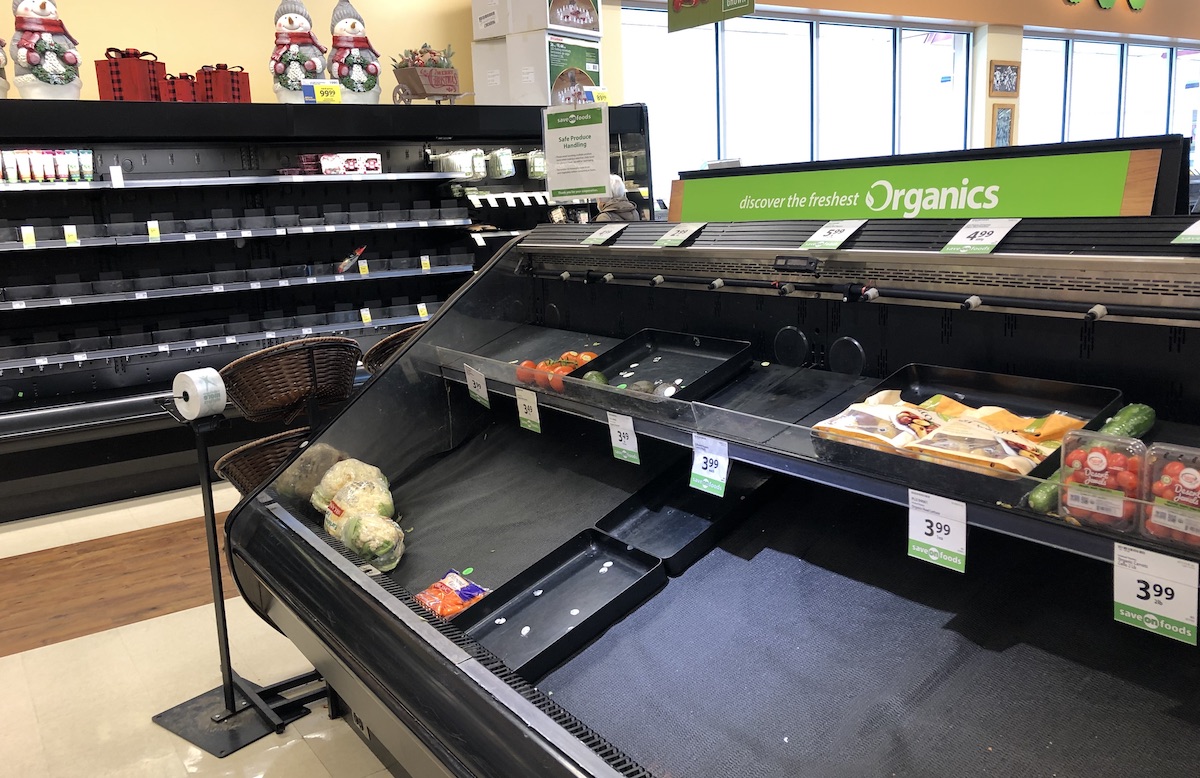 The produce aisles were almost bare. No leafy greens, no bananas, just a few russet potatoes and some red peppers.