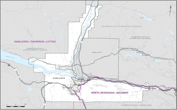The main populated area of the city, including Aberdeen and the North and South Shores, would be part of a riding called Kamloops-Thompson-Lytton, while an area stretching from Valleyview along the South Thompson River would be in a riding called North Okanagan-Shuswap.