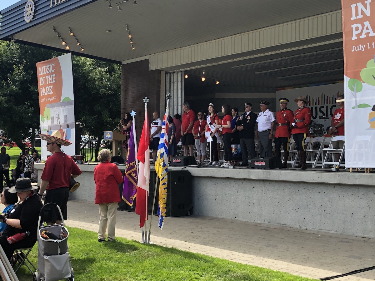 All the Canada Day traditions were in evidence at Riverside Park. There were bagpipes, drums and flags, and the reaffirmation of citizenship. The Folkfest food fair dished out perogies, bannock, noodles and burgers.