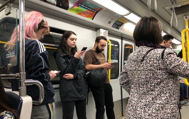 That’s in line with a Pew Research study that found three-quarters of American adults believe it’s OK to use a phone while on public transportation, or walking down the street, or standing in line. Four in 10 think it’s all right to do so in a restaurant. In movie theatres and churches, it’s one in 20.