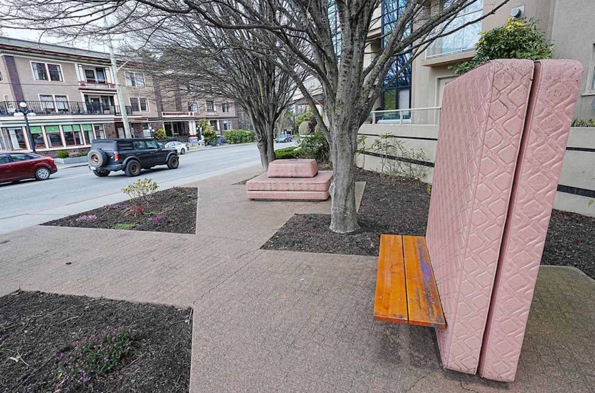 Its pink concrete mattresses are covered in dirt, bird droppings and mould. The brickwork of the tiny city-owned patio is cracking, a tripping hazard. The planted areas get littered with cigarette butts, used needles and beer cans.